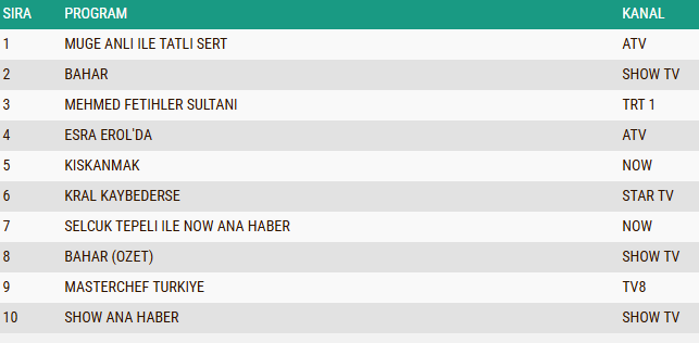 21 Ekim Salı günü, Türk televizyonlarında Total izleyici grubunda en çok izlenen yapım, ATV ekranlarının gündüz kuşağında yayınlanan ve gerçek hayat hikayelerini izleyici ile buluşturan "Esra Erol'da" programı oldu. Uzun soluklu başarısını azimli bir şekilde devam ettiren ve sunuculuğunu Esra Erol'un üstlenmiş olduğu program, yine geniş kitlelerce ilgiyle takip edilerek reyting listelerinde zirveye yerleşmeyi başardı. Konuya dair tüm detaylar haberimizde...