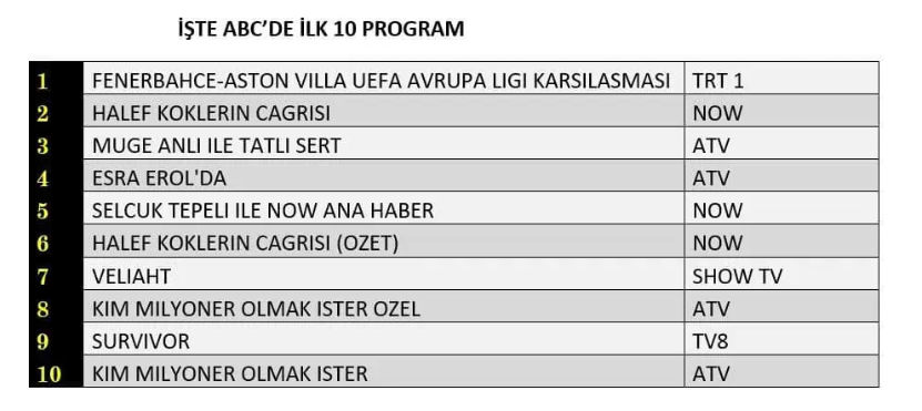 ABC1 REYTİNG SONUÇLARI