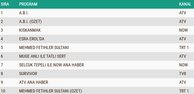ABC1 REYTİNG SONUÇLARI