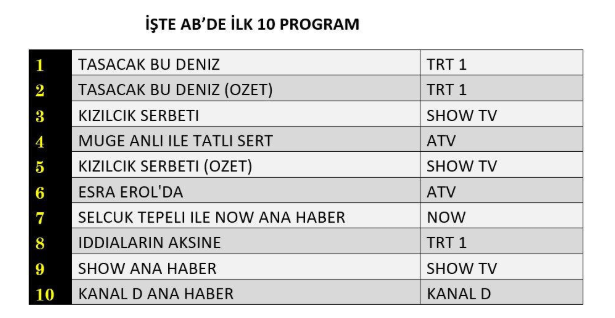 ABC1 REYTİNG SONUÇLARI