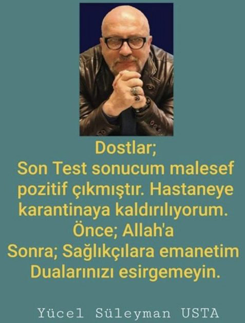 Deneyimli basın çalışanı Yücel Süleyman Usta, sosyal medya hesabından, “Son test sonucum maalesef pozitif çıktı, hastanede karantinaya giriyorum, önce Alah’a sonra sağlıkçılara emanetim, dualarınızı esirgemeyin” paylaşımında bulunmuştu. Usta bu mesajı, 29 Mart'ta paylaşmıştı. Süleyman Usta bu paylaşımının ardından karantinaya alınmış ve hastanede tedavi görüyordu. Usta'nın 14 Nisan'da vefat haberi geldi. Usta, hastanede yapılan tüm müdahaleye rağmen yaşama tutunamadı. Süleyman Usta’nın ardında bir üzücü haber de şeker hastası olan ve koronavirüse yakalanan annesinden geldi. Süleyman Usta’nın annesi Nurhayat Usta da dört saat sonra koronavirüs sebebiyle hayata veda etti. 55 yaşındaki usta ve annesi ebediyete uğurlandı.
