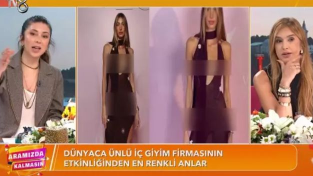 TV8 ekranlarının sevilen gündüz kuşağı programı 'Aramızda Kalmasın'da güzel model Şevval Şahin'in davet elbisesini yorumlayan sunucu Müge Dağıstanlı, "Şevval Şahin giyinmeyerek ön planda. Göğsün tüm hatları belli... Alttaki kısımda da iç çamaşırı yok gibi, bir şey tutturulmuş. Arkasını dönünce yok görüyorsunuz iç çamaşırı' ifadelerini kullandı.
