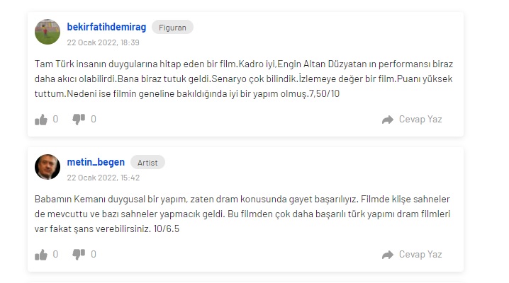 Babamın Kemanı 21 Ocak’ta Netflix’te yayınlandı. Film izleyicilerden iyi yorum ve eleştiriler almaya başladı. İşte Babamın Kemanı filmi için yapılan yorumların bazıları…