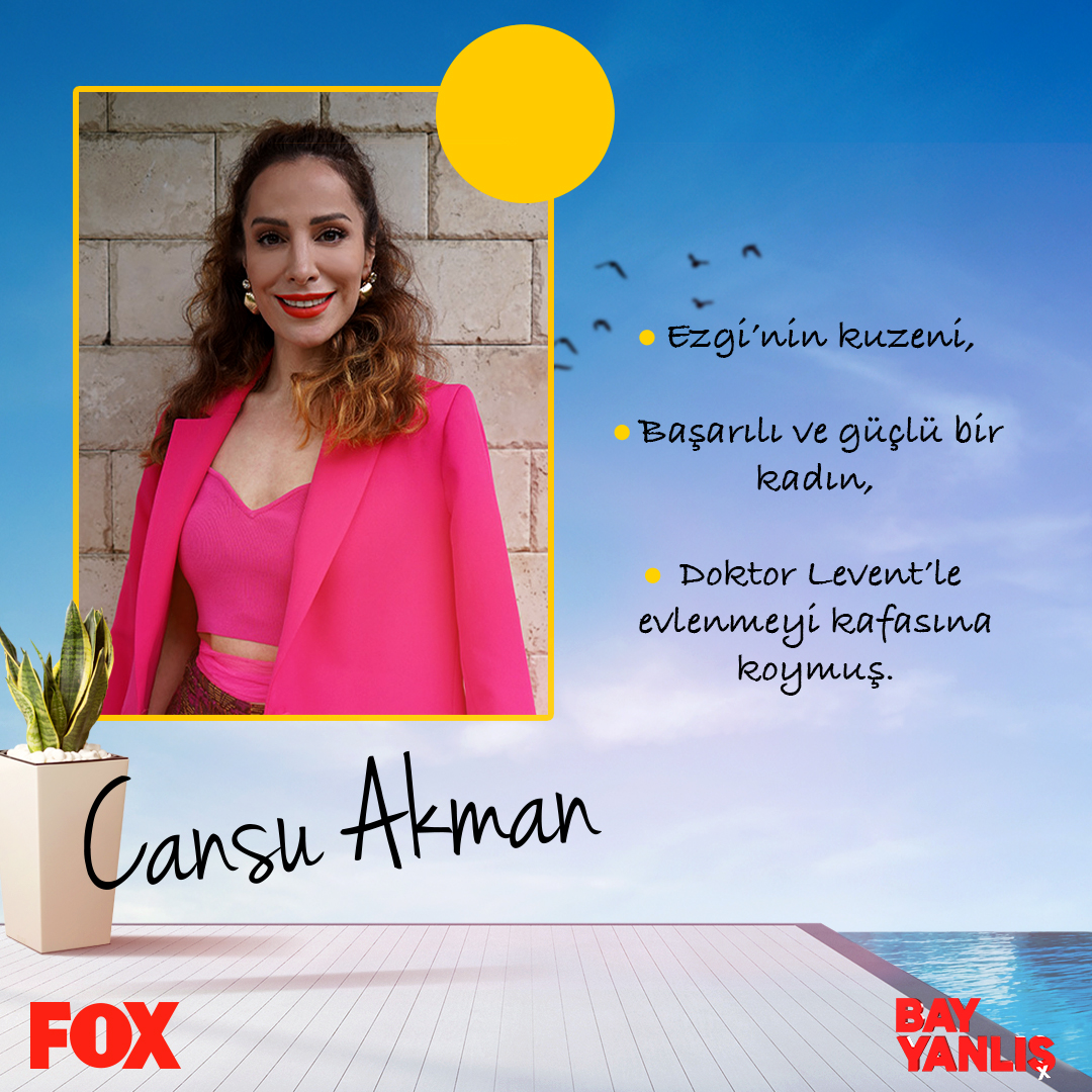 Bay Yanlış’ta kadın başrol Ezgi’nin kuzeni olan Cansu, 35 yaşlarında bakımlı, dış görünüşüne önem veren hoş bir kadındır. Çalıştığı hastanenin Halkla İlişkiler Müdür olan Cansu, gayretli ve ilişkilerinde güçlü bir kadındır. Sosyal yönü kuvvetli olan Cansu, Ezgi’nin sırdaşı ve dert ortağıdır. Çalıştığı hastanenin ortaklarından Doktor Levent ile arkadaş olan Cansu, Koç burcunun özelliklerini taşımaktadır. İlerleyen bölümlerde Ezgi’nin en büyük destekçisi olacaktır.