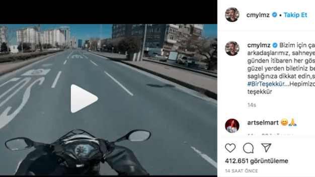 Sosyal medya hesabından kuryelerin fedakarlığına ve hayatlarını risk altında sürdürme gayretlerine e teşekkür eden Cem Yılmaz, çıkacağı ilk gösteride onlara salonun en güzel yerini açacak. Kuryelere teşekkür ettiği paylaşımda “sağlığınıza dikkat edin' mesajı verdi.