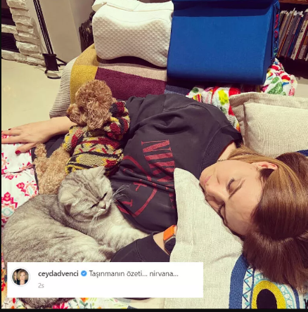 Daha sonra köpeği ve kedisiyle beraber yer aldığı resmini paylaşarak taşındığını duyurdu. Bülent Şakrak ise nakliye araçlarının resmini paylaşarak taşınmayla işiyle uğraştıklarını ilan etti..png)