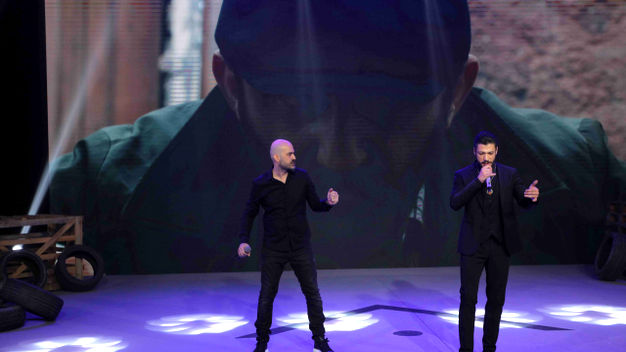 Ekip ve şarkıcılar aynı sahnede