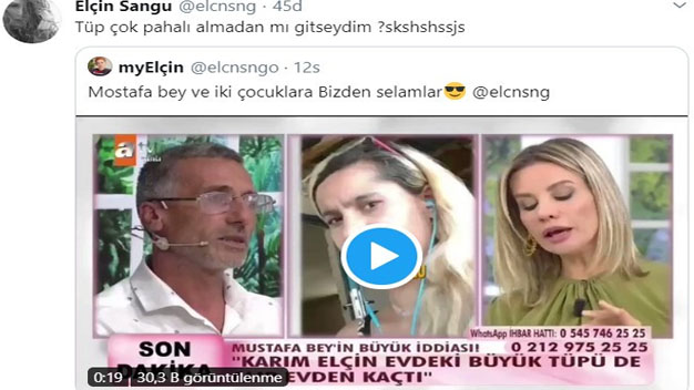 Atv ekranlarında her gün yeni bölümleriyle ekrana gelen ve başarılı sunucu Esra Erol’un sunuculuğunu yaptığı Esra Erol’da programında sunucu Esra Erol’un isimleri karıştırması ve Elçin Ulu yerine Elçin Sangu demesi güzel oyuncuyu da tebessüm ettirdi. Stüdyo konuğu Mustafa’nın “karım evdeki büyük tüpü de alıp kaçtı” sözleri üzerine Elçin Sangu yapılan hatayla ilgili sosyal medya hesabından yaptığı paylaşımda “Tüp çok pahalı almadan mı gitseydim” ifadelerini kullandı. Bu paylaşım bir anda binlerce beğeni ve yorum alırken okuyan herkesi tebessüm ettirdi.