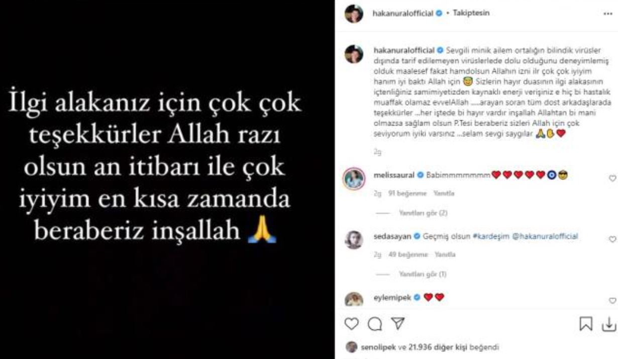 Ural o paylaşımında, "Sevgili minik ailem ortalığın bilindik virüsler dışında tarif edilemeyen virüslerle de dolu olduğunu deneyimlemiş olduk maalesef. Fakat hamdolsun Allah'ın izni ile çok çok iyiyim hanım iyi baktı Allah için. Sizlerin hayır duasının ilgi alakasının içtenliğiniz samimiyetinizden kaynaklı enerji verişinizle hiç bir hastalık muvaffak olamaz evvelallah. Arayan soran tüm dost arkadaşlara da teşekkürler. Her işte de bir hayır vardır inşallah Allah'tan bir mani olmazsa sağlam olsun Pazartesi beraberiz. Sizleri Allah için çok seviyorum iyi ki varsınız. Selam, sevgi, saygılar" ifadelerini kullanmıştı.