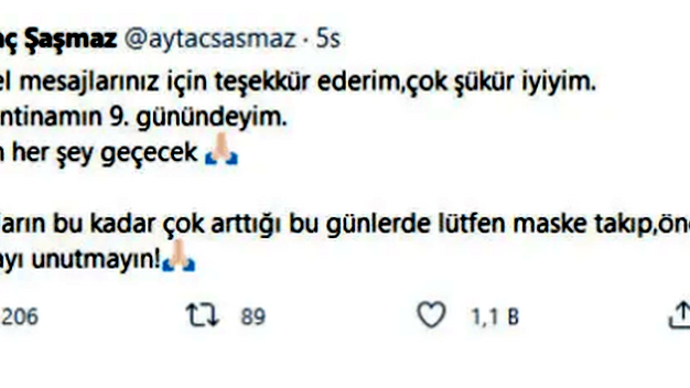 Kanal D'nin Salı akşamlarına imza atan uyarlama hastane dizisi Hekimoğlu'nda Emre karakterine can veren Aytaç Şaşmaz koronavirüs illetine yakalandı. Derhal evinde karantinaya alınan ve çekimlere ara veren Aytaç Şaşmaz sağlık durumunu endişeyle bekleyen hayranlarına açıklama yaptı. Twitter'dan açıklama yapan genç oyuncu dua eden herkese selamlarını ileterek iyi olduğunu söyleyerek bir de uyarıda bulundu: “Güzel mesajlarınız için teşekkür ederim, çok şükür iyiyim. Karantinamın 9. günündeyim. Yarın her şey geçecek. Sayıların bu kadar çok arttığı bu günlerde lütfen maske takıp, önlemlerinizi almayı unutmayın"