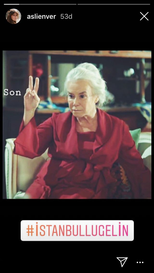 İstanbullu Gelin başrollerinde yer alan güzel oyuncu Aslı Enver, ınstagram hesabının story bölümünde yaptığı paylaşımda, kendisi ve Esma hanım yani İpek Bilgin'in fotoğraf karesini paylaşarak 'Son' notunu düştü. İzleyenlerin merak ettiği tek soru ise, final bölümünde Süreyya'nın Esma hanımı öldürüp öldürmeyeceği. Umarız İstanbullu Gelin final bölümü mutlu son ile biter...