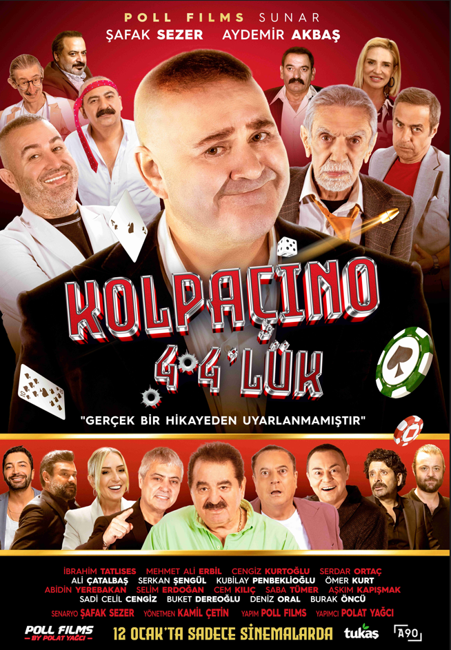 Şafak Sezer’in Kolpaçino serisinin son filmi olan Kolpaçino 4 serinin en komik filmi olarak gösteriliyor. Özellikle güçlü ve renkli kadrosu ile dikkat çeken filmin afişinde bu önemli isimler hepsi bir arada görülüyor. Başrollerinde Şafak Sezer ve Aydemir Akbaş’ın yer aldığı filmin kadrosunda yer alan diğer oyuncular şu şekilde sıralanıyor; İbrahim Tatlıses, Cengiz Kurtoğlu, Mehmet Ali Erbil, Serdar Ortaç, Aşkım Kapışmak, Cem Kılıç, Sadi Celil Cengiz, Saba Tümer ve Selim Erdoğan.
