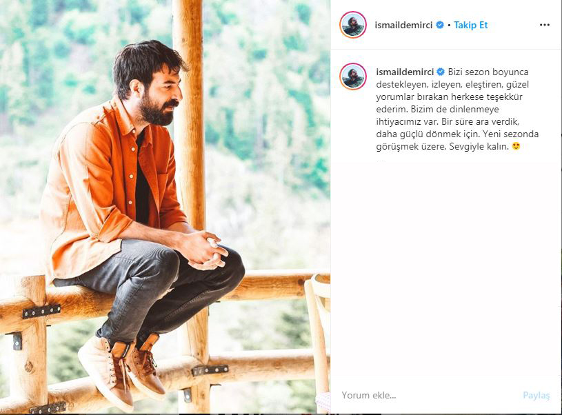 Dizinin diğer başrol oyuncusu İsmail Demirci de sosyal medya hesabından veda mesajı yayınladı. Demirci, "Bizi sezon boyunca destekleyen, izleyen, eleştiren, güzel yorumlar bırakan herkese teşekkür ederim. Bizim de dinlenmeye ihtiyacımız var. Bir süre ara verdik, daha güçlü dönmek için. Yeni sezonda görüşmek üzere. Sevgiyle kalın" ifadelerini kullandığı mesajıyla birlikte yalnız olduğu bir set fotoğrafı da paylaştı.