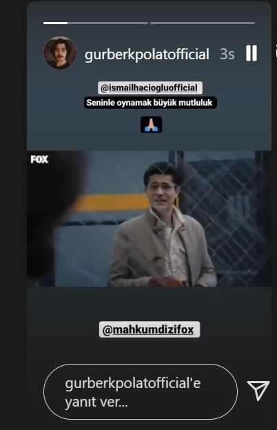 Mahkum isimli dizide canlandırdığı Eren karakteri ile tecrübelerini artıran oyuncu, rol arkadaşı İsmail Hacıoğlu’nun başarılı performansını sosyal medyasından yaptığı paylaşımla takdir etmişti. Aynı zamanda İsmail Hacıoğlu’nun bir hayranı olduğunu da paylaşımıyla göstermiş oldu.