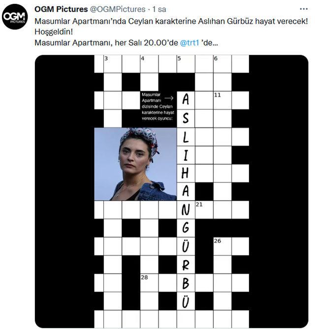 OGM Pictures, sosyal medya üzerinden oyuncu Aslıhan Gürbüz'n dizide Ceylan karakterine hayat vereceğini açıkladı.