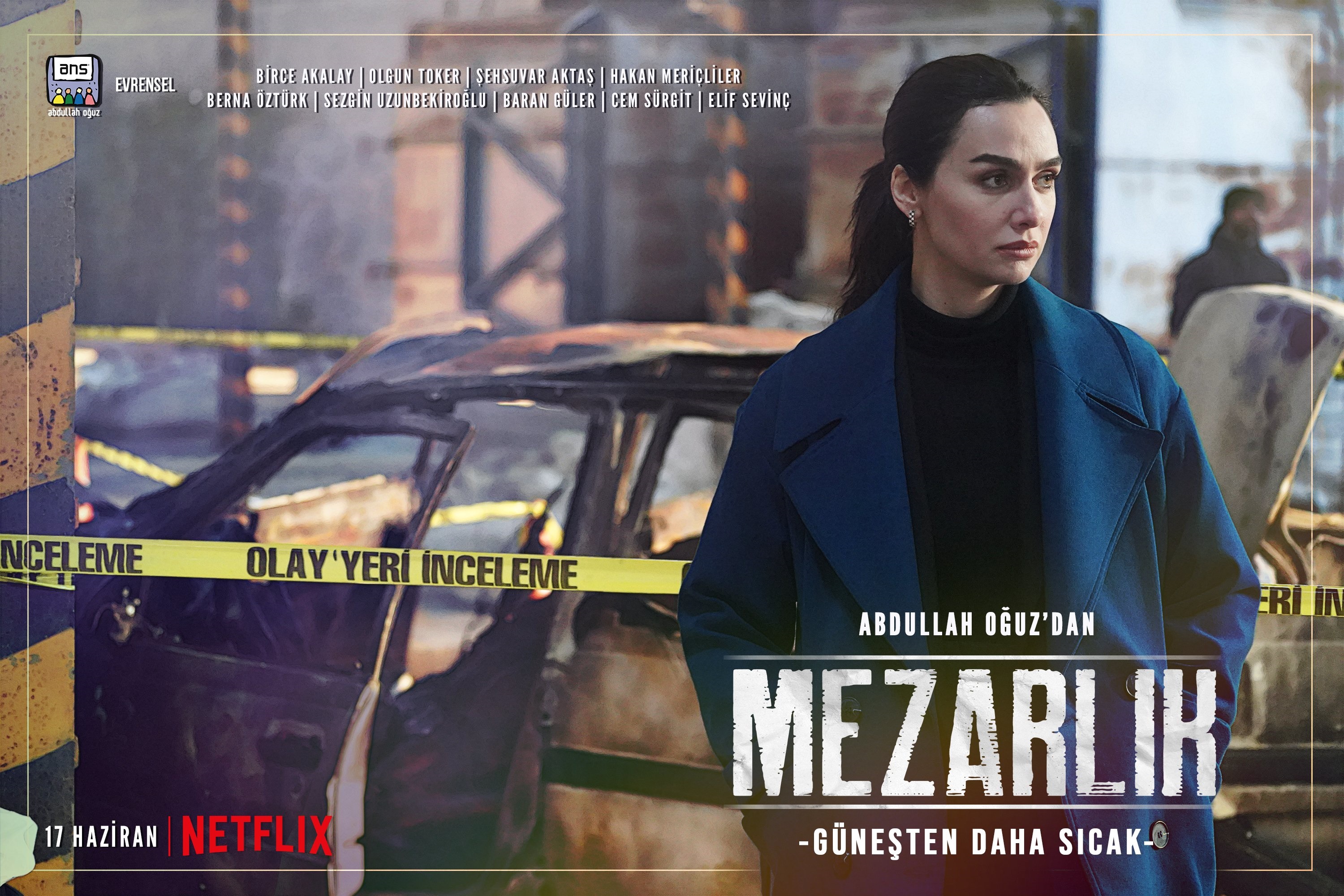Birce Akalay ve Olgun Toker’in başrollerinde rol aldığı büyük heyecanla beklenen ‘Mezarlık’ dizisi için geri sayım başladı. Yönetmen koltuğunda Polisiye dizilerdeki başarı ve kalitesini Kanıt ve Çember ile kanıtlamış olan Abdullah Oğuz’un oturduğu, senaryosunu Özden Uçar’ı Onur Böber ve Evren Oğuz’un kaleme aldığı seri ilk sezonunda ‘Güneşten Daha Sıcak’, ‘Bir Nefes Kadar Yakın’, ‘Göldeki Kadın’ ve ‘Düğüm’ olmak üzere 4 filmden oluşuyor. Birce Akalay’ın 2021 yılında İbrahim Çelikkol’la oynadığı Siyah Beyaz Aşk dizisinin ardından dikkatleri üzerine çekti. Yine Netflix’te 3 Haziran’da yayınlanmaya başlayan Kuş Uçuşu dizisi ile daha ilk haftadan büyük ilgi gören dizi ile Birce Akalay kariyerinde zirveye ulaştı. Şimdide bomba bir dizi Mezarlık ile yine Netflix’te ekranlara gelecek. Mezarlık dizisinin oyuncuları kimler? Konusu ne? Mezarlık dizisinin Afişi ve fragmanı yayınlandı. Ayrıca diziden ilk görüntüleri de geldi. İşte Mezarlık ile ilgili detaylar…