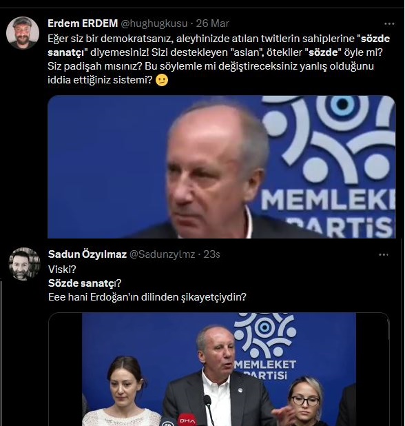 Yüz bin imzanın üzerinde imza toplayarak cumhurbaşkanı adayı olma hakkı kazanan Memleket Partisi Genel Başkanı Muharrem İnce düzenlediği basın toplantısında kendini desteklemeyen ünlülere tepki göstererek yakışıksız ifadeler kullandı. Basın toplantısında "Sırça köşklerde yaşayanlar, sırça köşklerinden çıkmayanlar, salon siyasetçileri, oturdukları yerden benim aleyhimde tweet atan, sözde sanatçılar… Siz bunları gördünüz mü? Bu zorlukları gördünüz mü?" ifadelerini kullanan Muharrem İnce tepkilerin hedefi haline geldi. Üzerlerine çok gelindiğini ifade eden İnce twitterden şu şekilde özür diledi:” "John Steinbeck, 'Bir insana dengesini kaybettirip, sonra da normal davranmasını bekleyemezsiniz.' der. Üzerimize çok gelindi. Normalde hiç kullanmadığım bir ifade olmasına rağmen basın toplantısında ağzımdan "sözde sanatçılar" şeklinde bir ifade çıktı.Üzülerek gördüm ki bunu üzerine alınan kıymetli sanatçılarımız olmuş. Bu ifade nedeniyle, bırakın adı geçen kıymetli sanatçılarımızı, ülkemin bütün sanatçılarından özür diliyorum. Ne derlerse desinler, ne yaparlarsa yapsınlar, sanatçıların başımızın üzerinde yeri vardır."