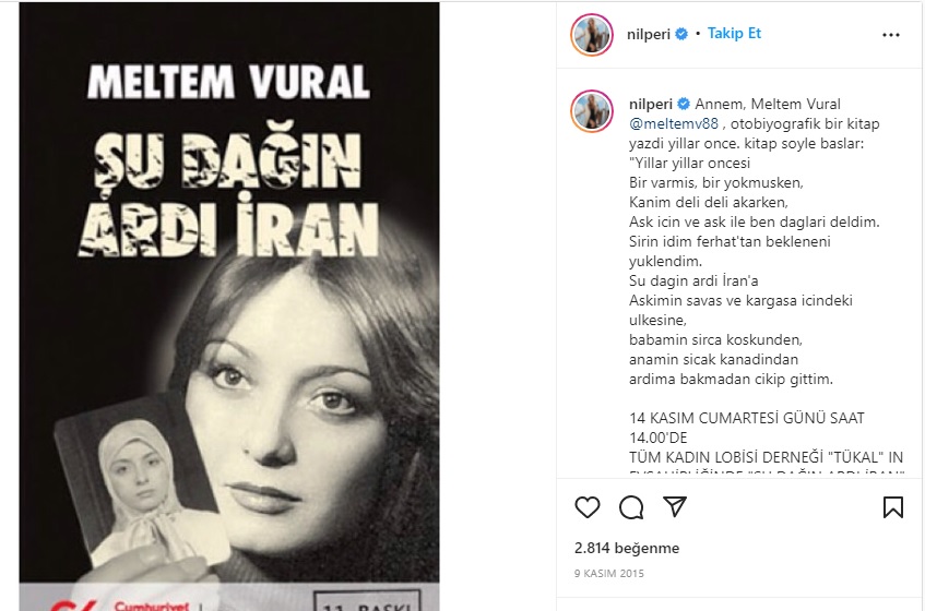 Nilperi Şahinkaya sözlerine şöyle devam ediyor; ‘’Orada kadınların küçük görüldüğü yerde çok büyük mücadele vermiş. Ve bir şekilde kaçıp gelmiş. O sancılı dönemi ise ‘Şu Dağın Ardı İran’ isimli otobiyografi kitabında anlattı. Bu kaçış mücadelesini anlattığı kitabı güzelce senaryolaştırıp filme çevirmek ve annemi canlandırmak çok isterim’’ diye ekliyor.