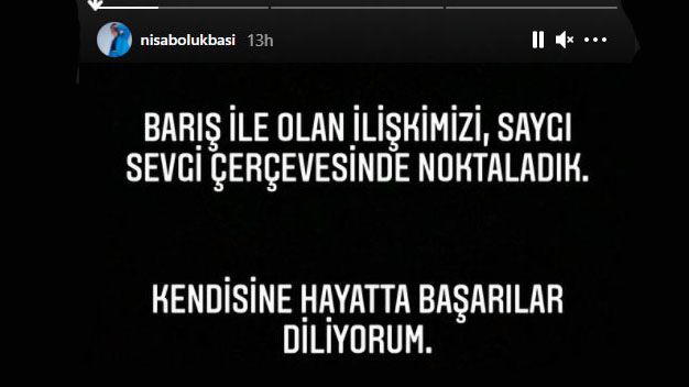 Survivor aşıkları olarak bilinen ve oldukça mutlu bir tablo sergileyen Nisa Bölükbaşı ile Barış Murat Yağcı’nın ani ayrılıları magazin basını ve sosyal medyada geniş yer buldu. Nisa Bölükbaşı’nın sosyal medya hesabından yaptığı bir paylaşımla bu ayrılığı doğrulaması ise akıllara neler oluyor sorusunu getirdi. Nisa Bölükbaşı paylaşımında “Barış ile olan ilişkimizi saygı, sevgi çerçevesinde noktaladık. Kendisine hayatta başarılar diliyorum” ifadelerini kullandı. Evlilik hayalleri kuran ve geçtiğimiz aylarda Nisa Bölükbaşı’na evlenme teklif eden Barış Murat Yağcı’dan ise ayrılıklarıyla ilgili bir açıklama gelmedi.