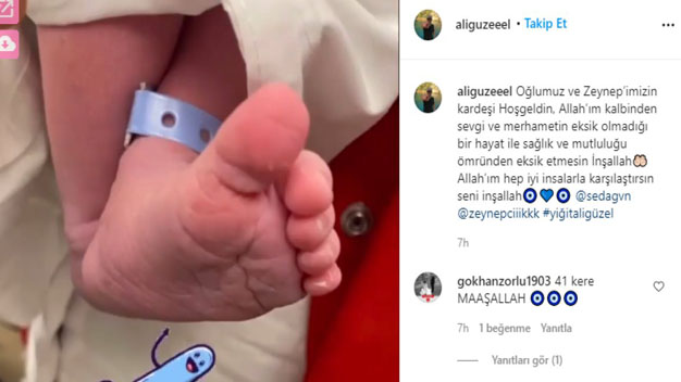 Geçtiğimiz yıl işadamı Ali Güzel ile evlenen oyuncu Seda Güven’in bugün bir bebeği dünyaya geldi. Özel bir hastanede gerçekleşen doğum sonrası hem anne hem de baba mutluluklarını sevenleriyle paylaştı. Ali Güzel soysala medya hesabından yaptığı paylaşımda “Oğlumuz ve Zeynep’imizin kardeşi hoş geldin. Allah’ım kalbinden sevgi ve merhametin eksik olmadığı bir hayat ile sağlık ve mutluluğu ömründen eksik etmesin inşallah. Allah’ım hep iyi insanlarla karşılaştırsın seni” ifadelerini kullandı. Yiğit Ali adı verilen bebeğin sağlık durumunun iyi olduğu öğrenildi. Başarılı oyuncu Seda Güven’de sosyal medya hesabından bir paylaşımda bulundu. Paylaşımında bebeğinin ayak resmini kullanan oyuncu “ben geldim” ifadelerini kullandı. Ünlü oyuncunun bu paylaşımına binlerce beğeni ve yorum yapılırken sevenleri Seda Güven’i tebrik yağmuruna tuttu. Bizde Yiğit Ali Bebeğe hoş geldin diyor ve sağlıklı mutlu bir ömür diliyoruz.