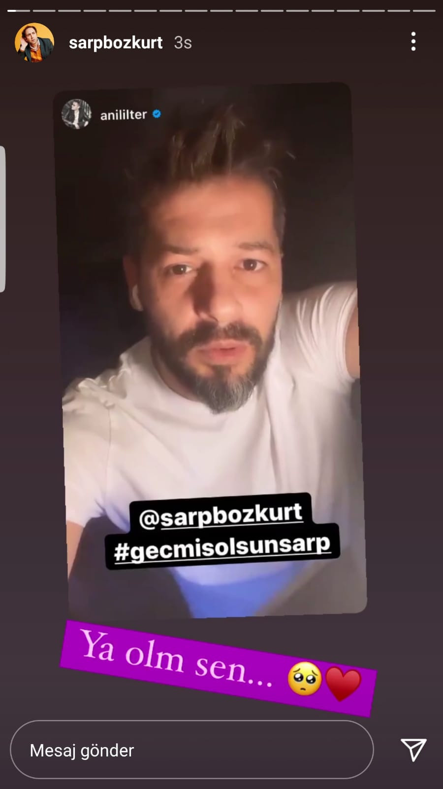 Olay duyulur duyulmaz hayranları Sarp Bozkurt’un sağlık durumu hakkında bilgi almaya çalıştı. Çok geçmeden Sarp Bozkurt bir paylaşım yaparak kendisi hakkında endişelene sevdiklerini yüreğine soğuk su serpti. Ünlü oyuncu "İyi ki varsınız" diyerek giriş yaptığı paylaşımda sağlık durumunu şu cümlelerle açıklığa kavuşturdu: "Ben aslında tamamen geçmesini, tamamen iyileşmeyi bekliyordum söylemek için. Ama çok güzel bir hareket yaptı Anıl İlter sağ olsun. Morale ihtiyacım olduğunu düşünerek. Tabii ki çok ağır geçiren insanlar var. Çok hafif geçiren insanlar da var. Ben neyse ki bir hafta hatta 8 gün olmak üzere evde geçirebildim bu dönemi. Akciğerde tutulum var kortizon tedavisi ile kendime gelmeye çalışıyorum. Her geçen gün daha da iyiye gidiyorum. Bir şekilde ateşinin düşmesini bekliyorum. Çok şekersiniz"