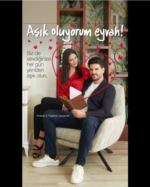 14 Şubat sabahı Almeda’nın gülümseyerek uyanışı ile başlayan reklam filminin hikâyesi Tolgahan’ın sürprizleriyle devam ediyor. Çift ‘’Aşık Oluyorum Eyvah’’ şarkısını birbirlerine söyleyerek Nükhet Duru’ya eşlik ediyor ve filmin sonlarında da birbirlerine verdikleri kartta yazan ‘’Evimde Tek Kalbimde Tek’’ mesajlarıyla bitiyor.