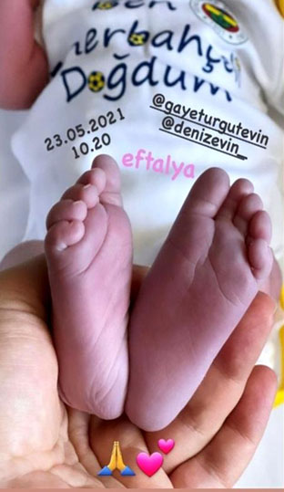 Bu sabah dünyaya gelen Eftelya bebekle anne ve baba olma heyecanını yaşayan Gaye Turgut Evin yaşadığı mutluluğu ve sevinci sosyal medya hesabından yaptığı paylaşımla sevenlerine de duyurdu. Gaye Turgut Evin “ailemize güzel kızımız Eftelya katıldı. Bahtın, ömrün, güzel olsun kızım. Vatana, millete hayırlı bir evlat ol. Ömrün boyunca adaletli, vicdanlı ol. Hüseyin’lerin yanında Yezitlerin karşısında ol” ifadelerini kullandı. Çift ayrıca sosyal medya hesabından dünyaya gelen küçük bebeklerinin ve kendisinin de ilk resimlerini paylaştı. Ayrıca küçük bebeğin yüzü de gizlendi. Bu paylaşımın ardından binlerce seveni çifte tebrik mesajlarını gönderdi ve yorumlarda bulundu. Bizde ünlü çifti dünyaya gelen bebekleri dolayısıyla tebrik ediyor ve dünyaya gelen Eftelya bebeğe de nice hayırlı ömürler diliyoruz.