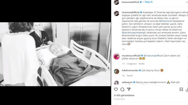 Geçtiğimiz sene böbreklerinden ameliyat olan ünlü şarkıcı Niran Ünsal bu senede safra kesesinden acil olarak ameliyata alındı. Ünlü şarkıcı geçtiğimiz günlerde başlayan ve bir türlü dinmeyen ağrılar sebebiyle hastaneye başvurdu ve burada yapılan muayenenin ardından acil olarak ameliyata alınmasına karar verildi. Hastanede yapılan muayenenin ardından ünlü şarkıcının safra kesesinde çamur ve taş tespit edildi ve acil ameliyata karar verildi. Ünlü şarkıcı ameliyat kararını sosyal medya hesabından paylaştı. Niran Ünsal paylaşımında “arkadaşlar 23 Nisan’da sağ kaburgamın altında başlayan şiddetli bir ağrı beni ameliyata kadar sürükledi. Yaklaşık üç gün çektiğim ağrı ateşlenmeme de sebep oldu ve ağrının dayanılmaz hale gelmesi ile sonunda hastaneye gittim. Kan tahlillerim, ultrason ve diğer tetkikler yapıldı. Safra kesesinin yoğun iltihaplanması, balon gibi şişmesi ayrıca safra kesesinin kanalında taş ve çamur olması sebebi ile doktorum tarafından acil ameliyata alındım” ifadelerini kullandı.