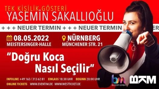 ‘Doğru Koca Nasıl Seçilir?’ ile Türkiye’de turneye çıkan Yasemin Sakallıoğlu, seyirciden büyük ilgi görüyor. Biletleri günler öncesinden tükeniyor. 2 saatlik gösteri boyunca kahkahalar havada uçuşurken, gösteri çıkışında yüzler gülerek izleyici büyük bir memnuniyetle ayrılıyor.